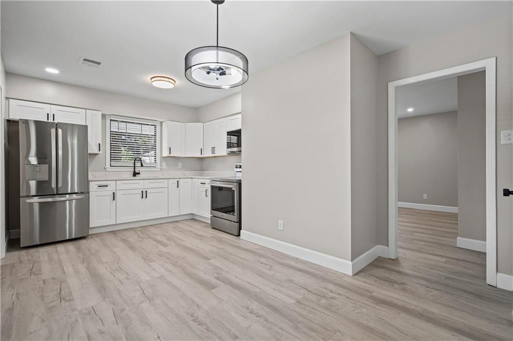 Move-in ready modern Midtown home! This beautifully updated 3-bedroom, 2-bath residence offers 1,107 sq ft of stylish living with a new roof, fresh paint, new vinyl flooring throughout, and detailed crown molding and baseboards for a polished finish.The renovated kitchen features granite countertops, an eat-in dining area, and brand-new appliances including a stove, microwave, refrigerator, washer, and dryer.The primary suite offers a stunning ensuite bath with marble flooring, a dual shower head, and an LED mirror with modern fixtures.Enjoy a peaceful yard with serene landscaping and space to garden, all conveniently located near Midtown shopping, parks, dining, and downtown.
